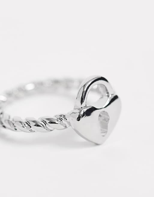 Asos Design Bague Pour Auriculaire Motif Cadenas En Forme De Cœur Argente