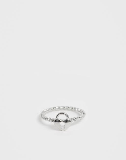 Asos Design Curve Bague D Auriculaire Avec Cadenas Cœur Argente