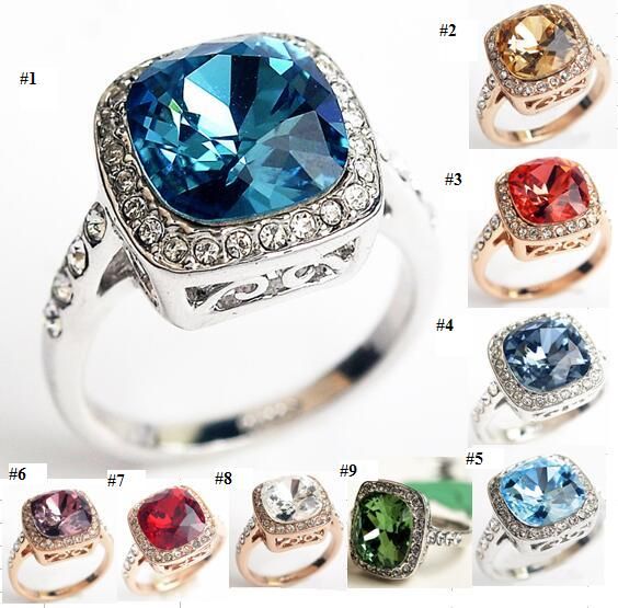 Acheter 18 K Blanc Or Rose Plaque Conception Royale Autrichienne Cristal Carre Vert Vert Emeraude Lady Bague En Gros 9 Couleurs De 7 04 Du