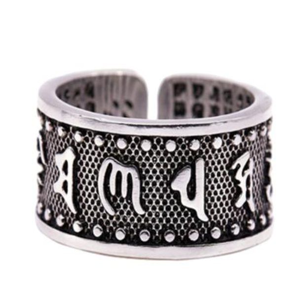 Acheter Argent 925 Nouveau Design Ouvert Bague Chanceux Bouddhisme Six Mots De Mantra Grande Malediction De Bouddha Chanceux Pour Les Femmes Homme