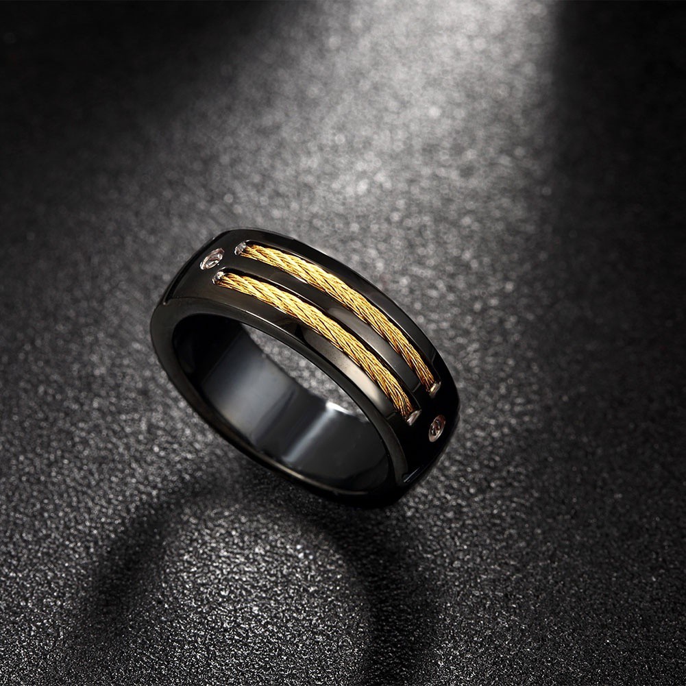 Junxin Black Stone Zircon Ring Black Gold Filled Mens