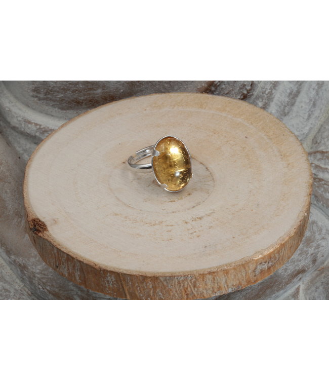 Bague Reglable Doree Et Citrine
