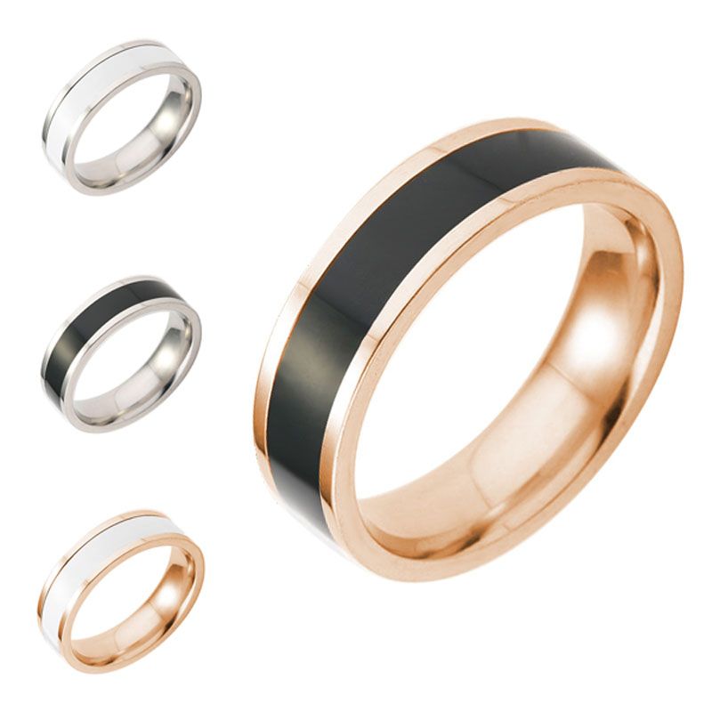 Acheter Titane Noir Blanc Bague En Or Rose Simple Bande Anneaux Deux Anneaux De Ton Anneaux Couple Pour Femmes Mode Homme Lovers Bijoux De 0 53 Du
