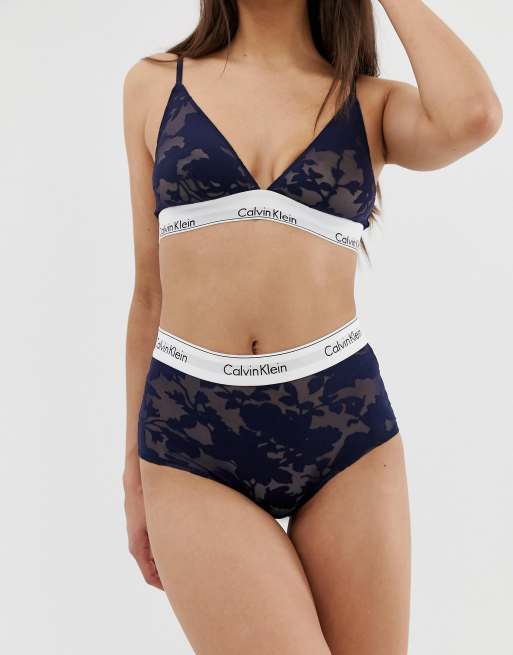 Calvin Klein Modern Culotte Taille Haute En Coton Moderne A Fleurs Effet Devore Bleu Marine Shoreline