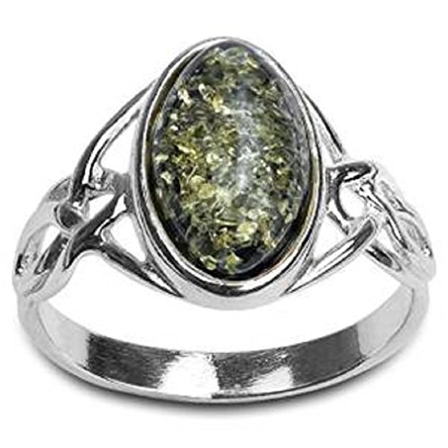 Noda Bague En Ambre Vert Et Argent 925 1000 Celtique Taille