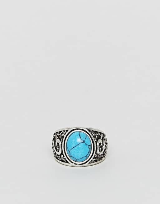 Homme Bague Pour Homme En Argent Avec Pierre Turquoise Ovale