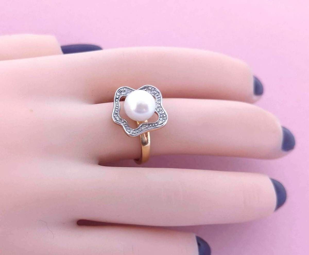 Bague Or 375 2 Tons Perle De Culture De Chine Diamant